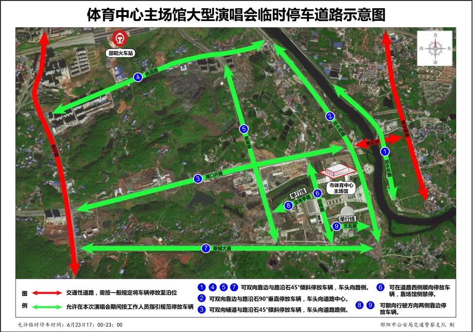 2023年6月23日晚上19时至23时将在邵阳市大祥区体育新城主体馆举行“大型演唱会”活动,为保障活动期间道路交通安全、畅通、有序,根据《中华人民共和国道路交通安全法》有关规定,对体育新城周边道路实行临时交通管制,现公告如下: